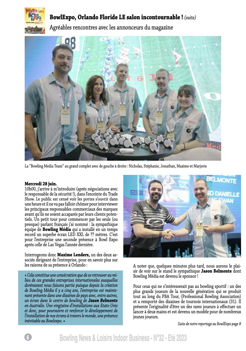 Une visite prochaine du magazine Bowling News & Loisirs Indoor Business à cet établissement