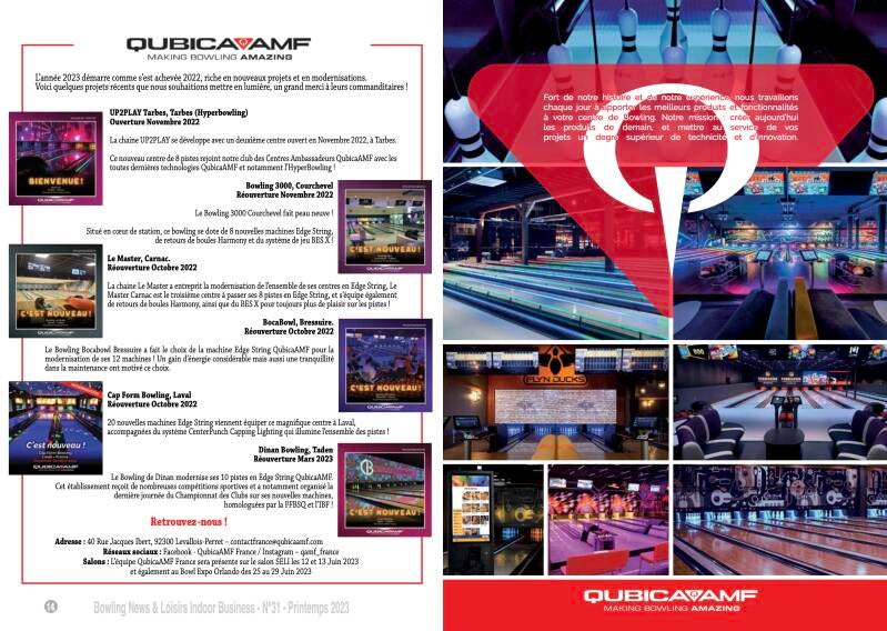 Cette page est dédiée à la société QubicaAMF, annonceur historique du magazine Bowling News & Loisirs Indoor Business.