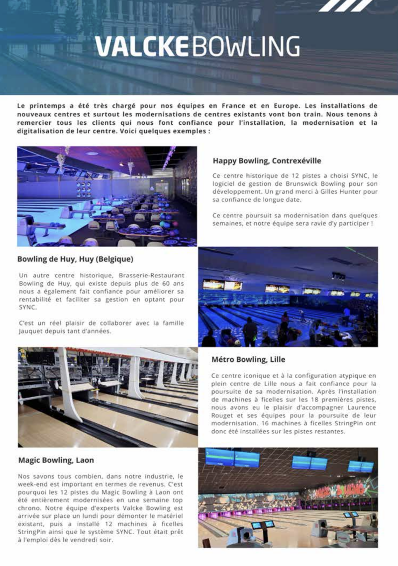 Excellente relations avec les équipes de Valcke Bowling Service distributeur et installateur Brunswick Bowling.